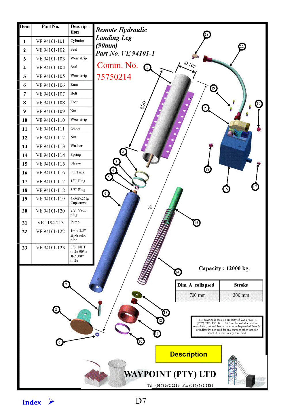 | Product | Landing Leg (Pump & Tank incl) Comp, 700 long, Landing Leg Cylinder only, Landing Leg Cylinder, 700 long, Landing Leg: Pump and Tank only, Landing Leg(Pump and Tank inc) Complete, Remote Hydraulic Landing |