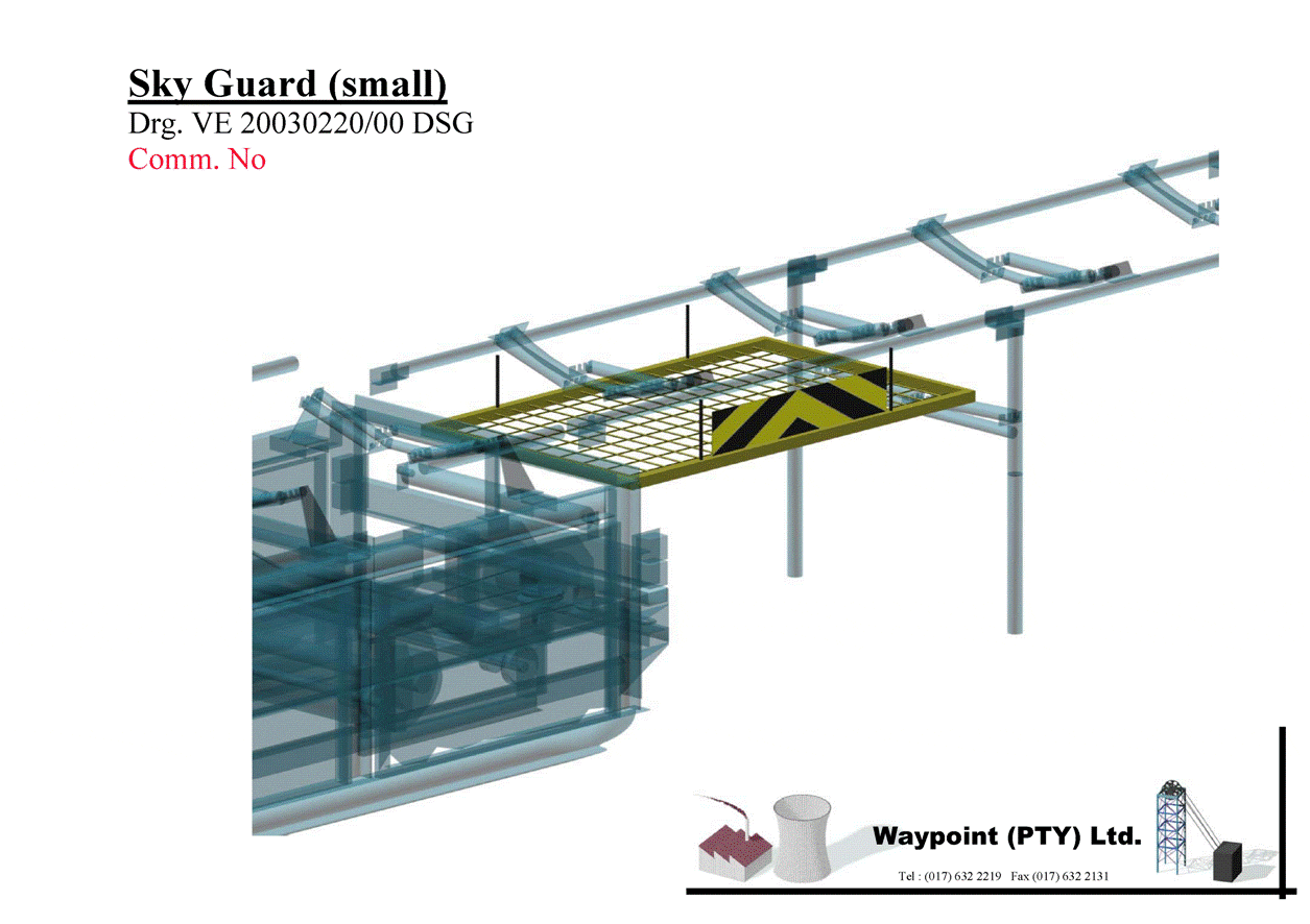 Guard frame from Sq tubing with 200-aperture grid suspended with 4 chains from belt structure mounted directly behind section conveyor drive section