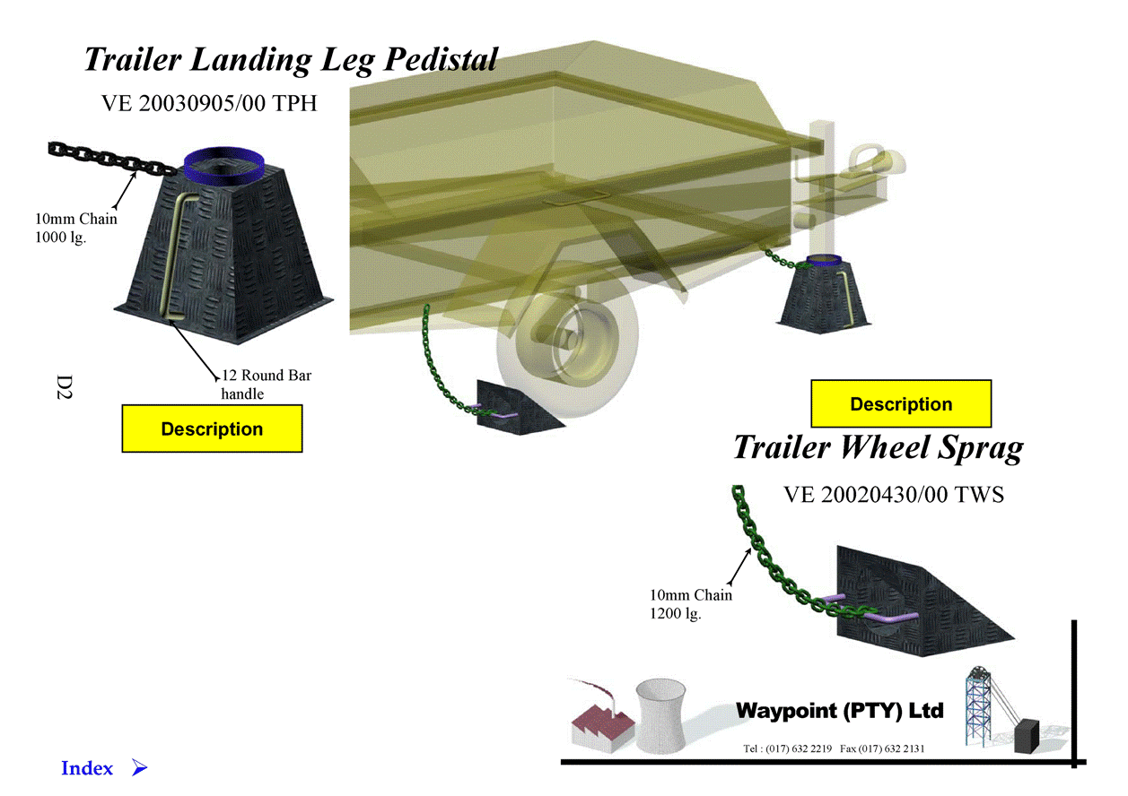 Trailer Landing leg Pedestal, Trailer Pedestal and Sprag, Wheel Sprag on Chain